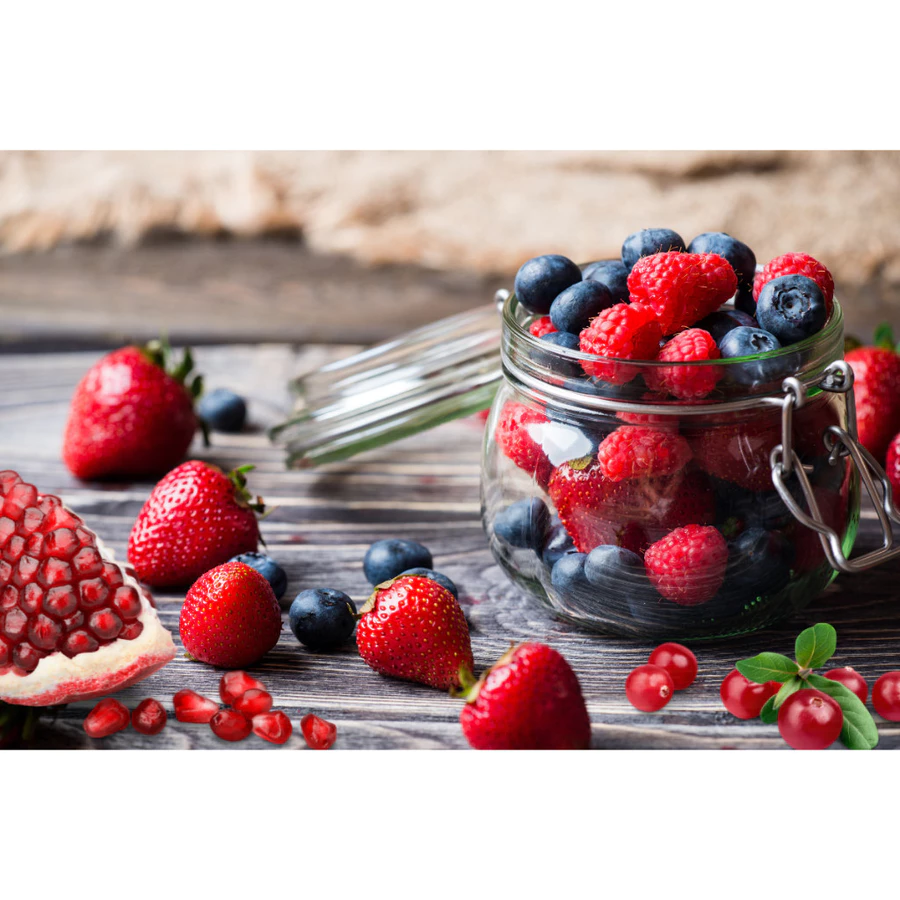 Kết hợp tinh túy từ các loại quả mọng: việt quất, mâm xôi, dâu đen, anh đào…